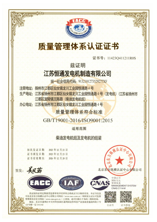 恒通發電機榮譽資質